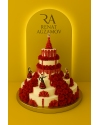 Диаметр нижнего яруса 30 см, высота торта 30 см.