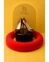Женский торт на заказ оригинального дизайна исполнен в ярком красном цвете. Декор из карамели.