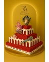 Верхний ярус торта украшает, лежащая на шоколадном постаменте,