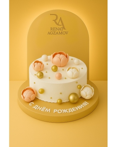 цвете. Дополняют композицию золотые сахарные бусинки, а так же шарики из