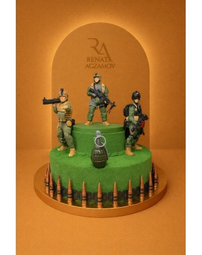 украшением торта являются фигурки мужчин в военной форме, выполненные из