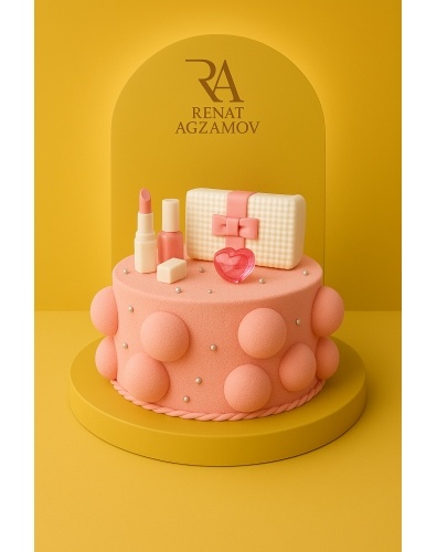 Торт на заказ в 1 ярус, покрытый шоколадным велюром розового цвета.